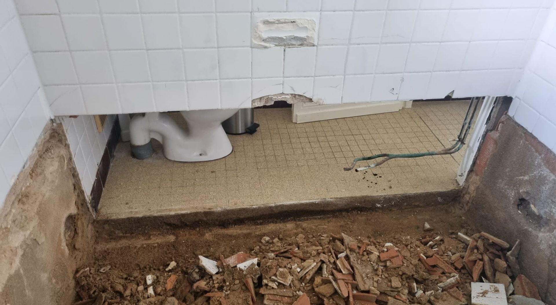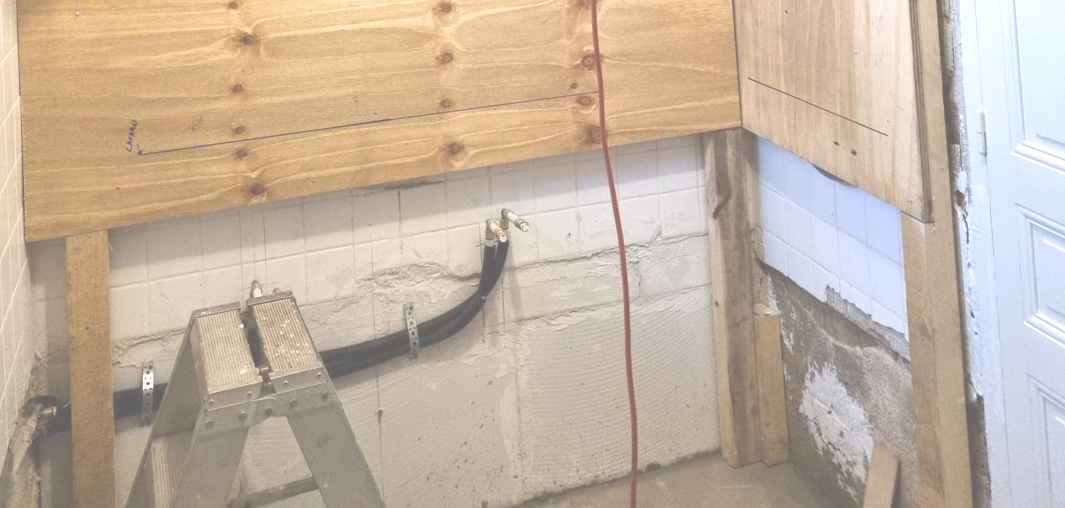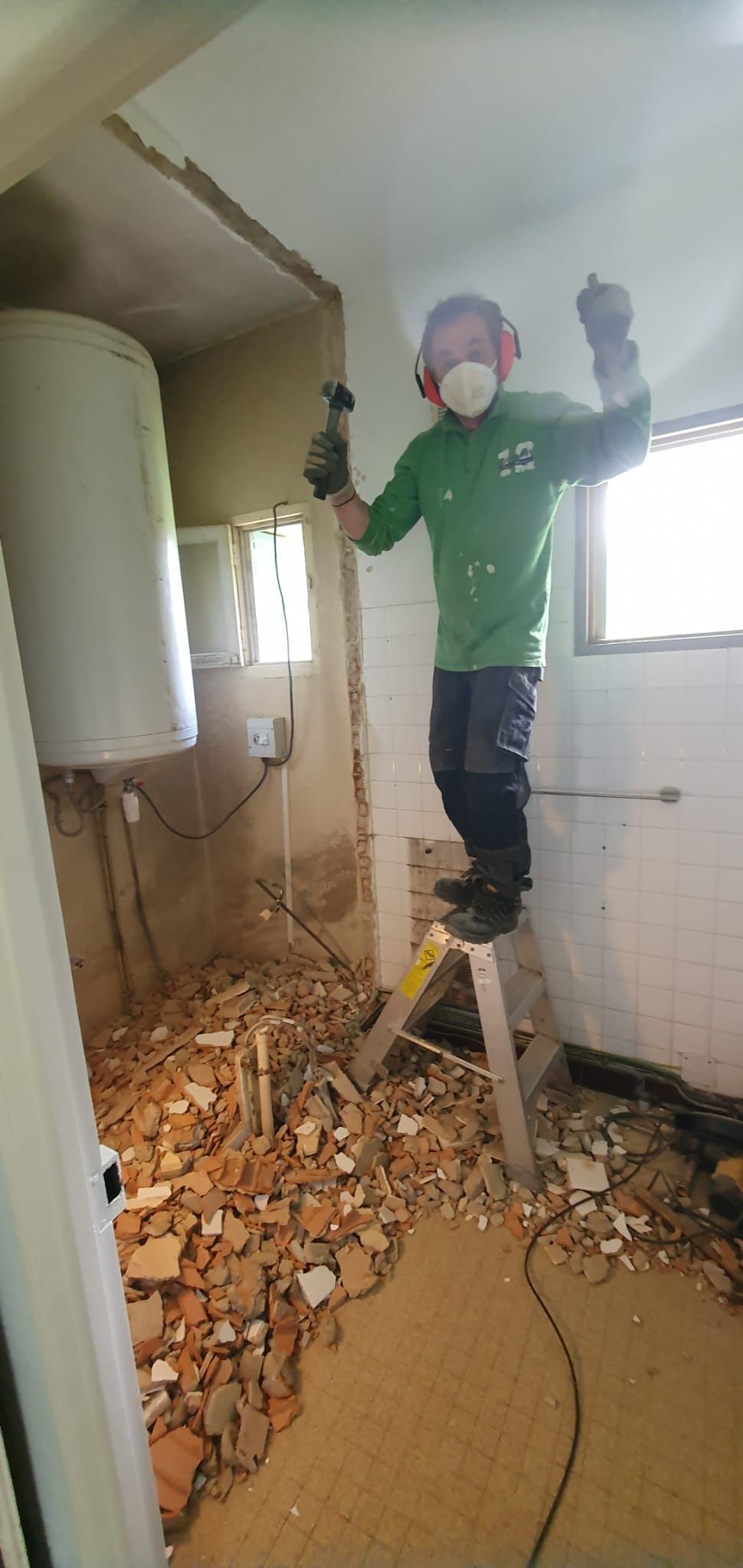 Oude leidingen, niet weten waar de afvoer en electra precies loopt. Ai, een dramatische ontdekking... al dat vocht in de winter blijkt niet alleen vanuit de schoorsteen te komen (die heeft nog een kap nodig) of dakgoten die aan vernieuwing toe zijn.
